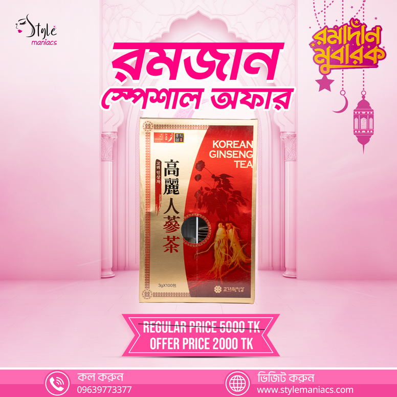 কোরিয়ান জিনসেং চা : একটি চা এর মাধ্যমে নিজের ত্বককে সুন্দর, গ্লেমার লুক এবং বডি সুন্দর শেপ আনতে একথা কোরিয়ান জিনসিং চা নিয়ে নিন।এটি কোরিয়ানদের মতো শুধু লুক আপনাকে। ৩-৫ মধ্যে ইম্প্রুভ আলোচনা করতে পারবেন।